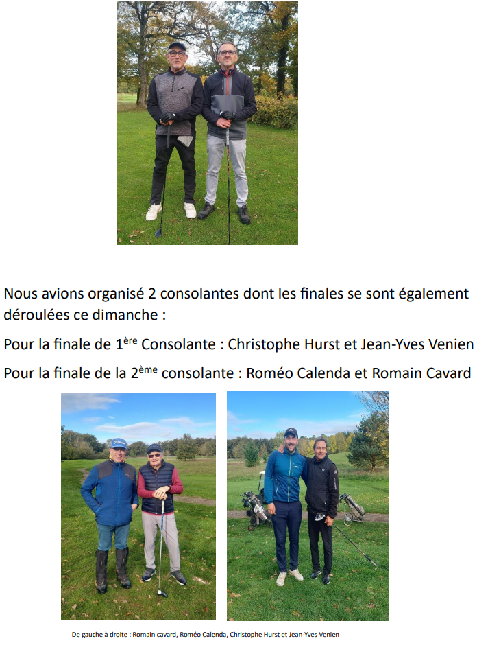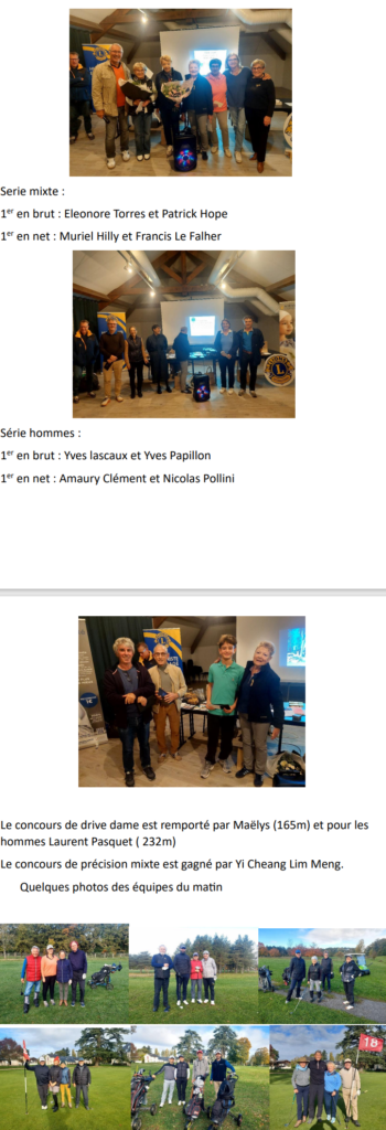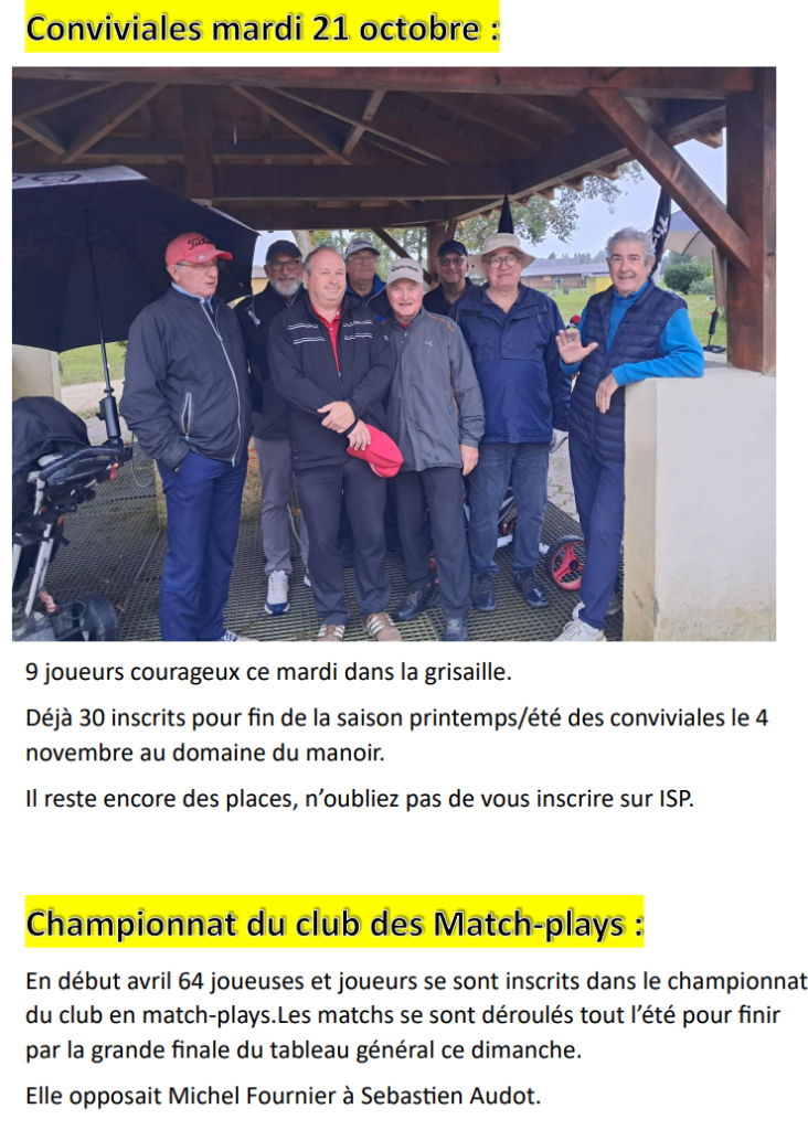 - Dimanche 2 novembre : Compétition OPEN du personnel – inscription sur isp ( https://www.isp-golf.fr/ ) Merci de votre participation.
