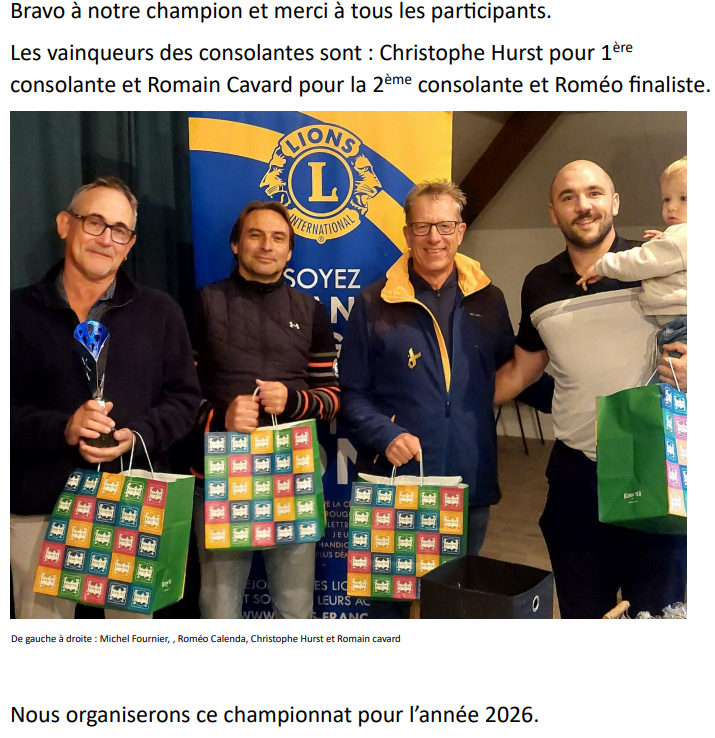 - Les conviviales du mardi avec la finale le mardi 4 novembre où vous pouvez toujours vous inscrire (asgcpm@gmail.com) avec les 30 joueurs déjà inscrits.