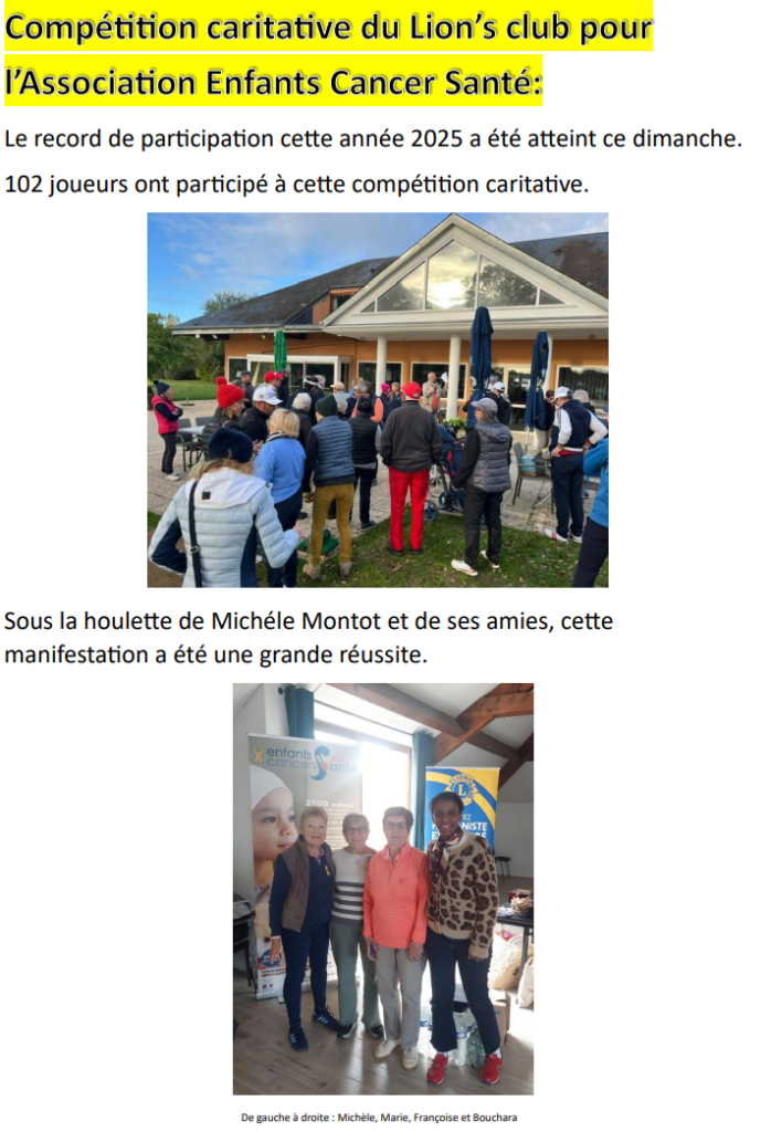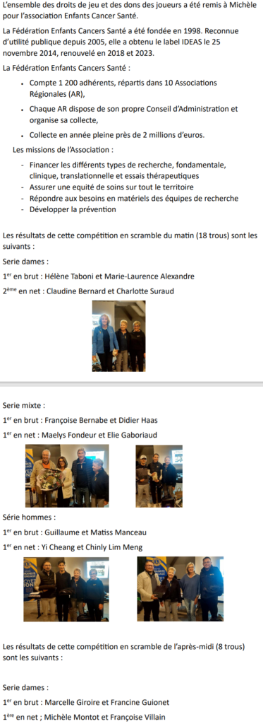 - Samedi 8 novembre : 1ère hivernale de Pitch and Putt à 10H avec un seul tour- inscription sur (pitchgolf.fr)