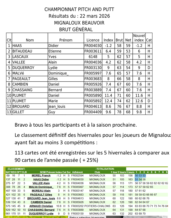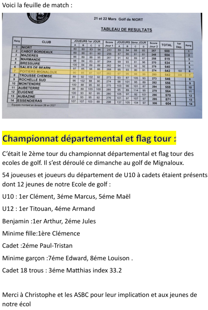 – Dimanche 12 avril : Compétition de classement  ( https://isp.golf )