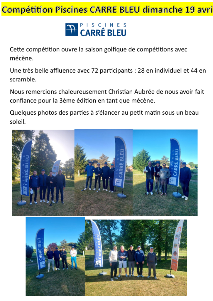 Nous adressons nos plus sincères remerciements à Christian Aubrée de Piscines Carré Bleu pour son soutien en tant que mécène pour la 3ème édition de notre compétition qui s’est tenue ce dimanche.